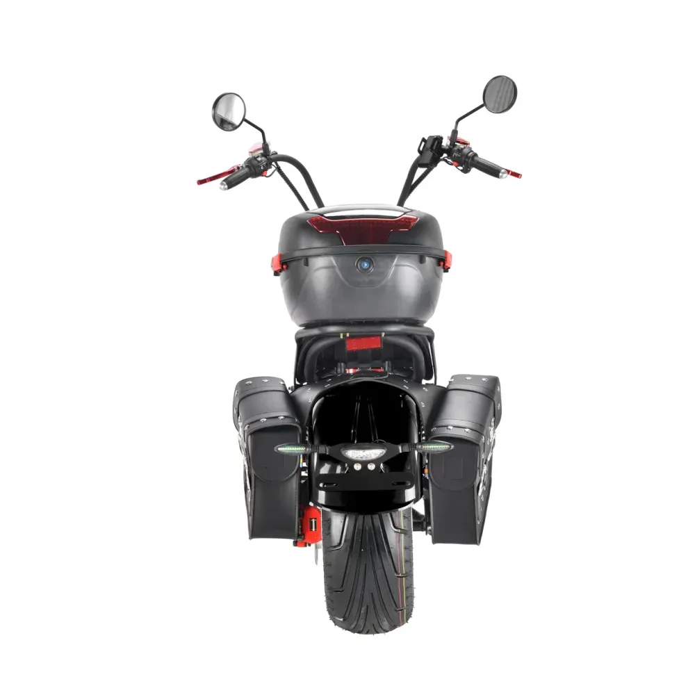 Модель оснащена 12-дюймовыми вездеходными колесами, позволяющими преодолевать препятствия по городской и непроходимой местности. Двигатель мощностью 3950 Вт допускает развитие скорости до 71 км/час. Мощное АКБ с полной зарядкой до 6 часов остается работоспособным до 40 км пути.