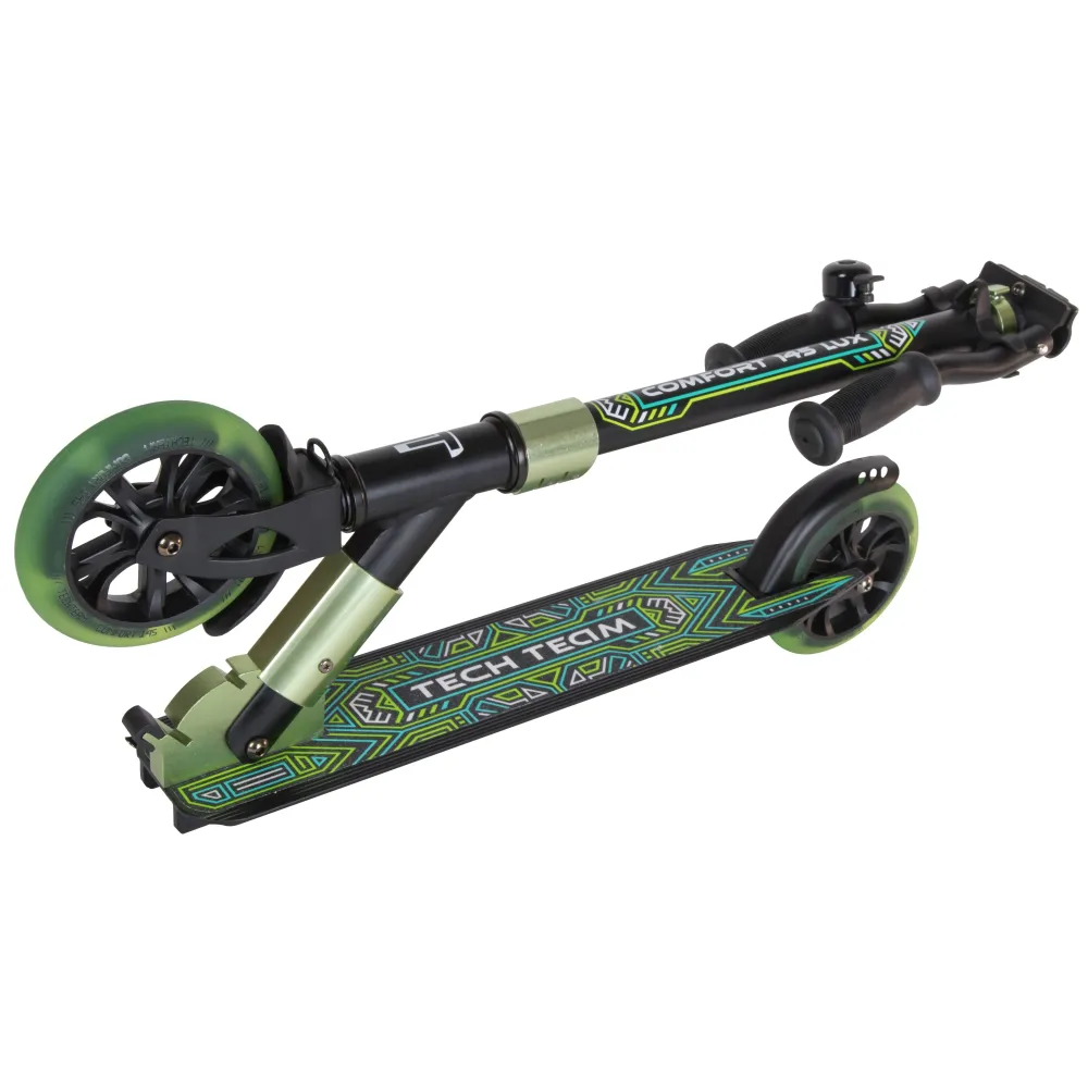 Самокат Comfort 145 Lux 2022 черно-зеленый – для мальчиков и девочек 5-летнего возраста стал настоящим сюрпризом. Характеристики техники обеспечивают стопроцентную безопасность ездока, позволяют совершенствовать навыки передвижения в пределах города и парковой зоны. Купить самокат по разумной цене, воспользоваться другими бонусами предлагает наш интернет-магазин.